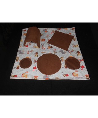 N'oubliez pas d'enregistrer votre personnalisation pour pouvoir ajouter au panierUn tapis de jeu dans lequel vos rongeurs peuvent se faufiler dans la doublure, mais aussi ressortir par les trous situés sur les côtés et sous chaque accessoire.